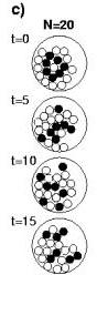 Taking out a sphere from N=21 causes chaotic mixing (c). Putting back