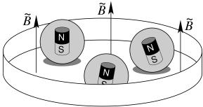 Experiments with spheres containing magnetic dipoles and exposed to a periodical magnetic field were performed. Sketch of the setup: